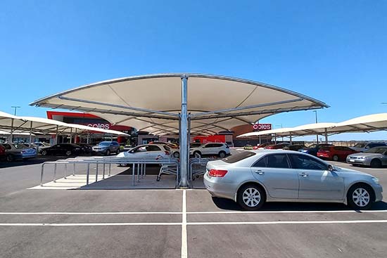 轻质高强:相比传统的金属车棚,膜结构更为轻便,且能够覆盖大面积,不需要过多的支撑结构。