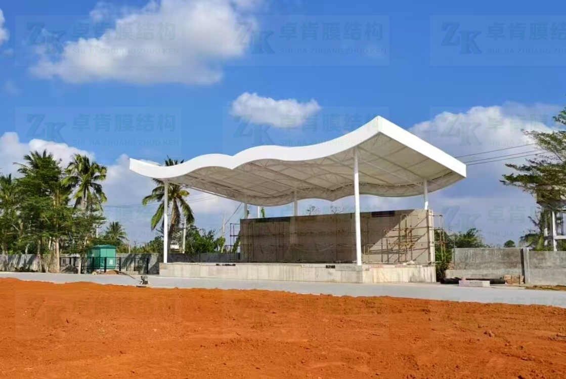 海南文昌主席台膜结构顶棚竣工。。随着校园建设水平的提升,越来越多的学校开始注重不仅实用功能,还要兼具美观的建筑设计。尤其是作为重大集会场所的中小学主席台,更需要一种既美观大方又经久耐用的顶棚设计。“主席台膜结构顶棚”作为一种创新性的建筑结构,完美解决了这些需求!那么,主席台膜结构顶棚到底有什么独特之处?为何它会逐渐成为校园建设的“新宠”?接下来,我们将为大家详细解析。