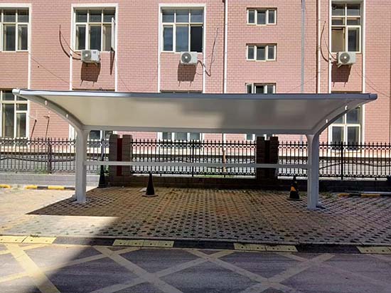 膜结构车棚的维护相对简单。定期清洗膜材表面,检查膜材的张力状态,确保没有破损或老化,是维护的主要内容。同时,定期检查钢结构和支撑系统,确保其稳定性。