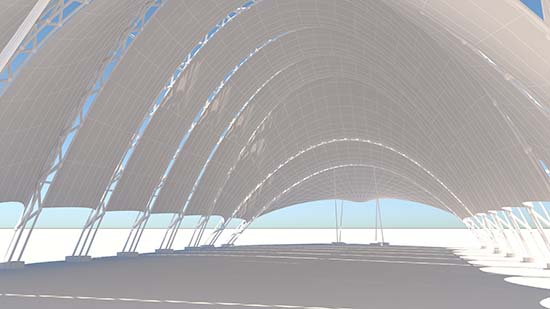 膜结构的另一大优势是它的环保性和能源效率。膜材料通常具有较高的透光性,能够让自然光进入球场,减少人工照明的需求。再加上膜结构本身的重量轻、成本较低,使得其在建造时对环境影响较小,也降低了施工过程中资源的浪费。