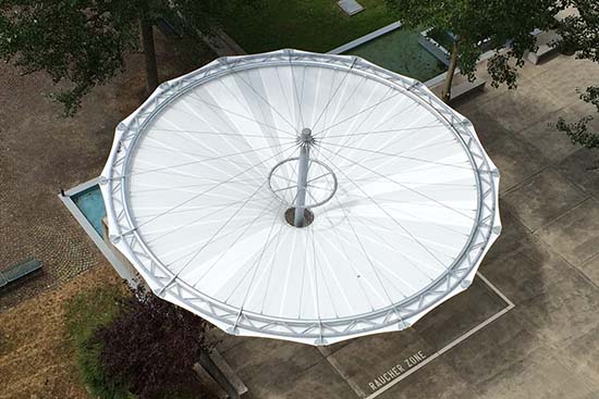 灵活性高:膜结构车棚的设计可以根据不同的空间需求进行调整,适用于各种不同的场所。