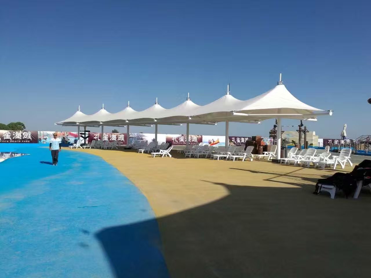 适用广特点:从气候条件看,膜结构遮阳棚适用的地域广阔;从规模上看,小到公园遮阳小品,大到覆盖几万、几十万平方米的建筑。甚至有人曾设想覆盖yi个小城,实现人造自然。
