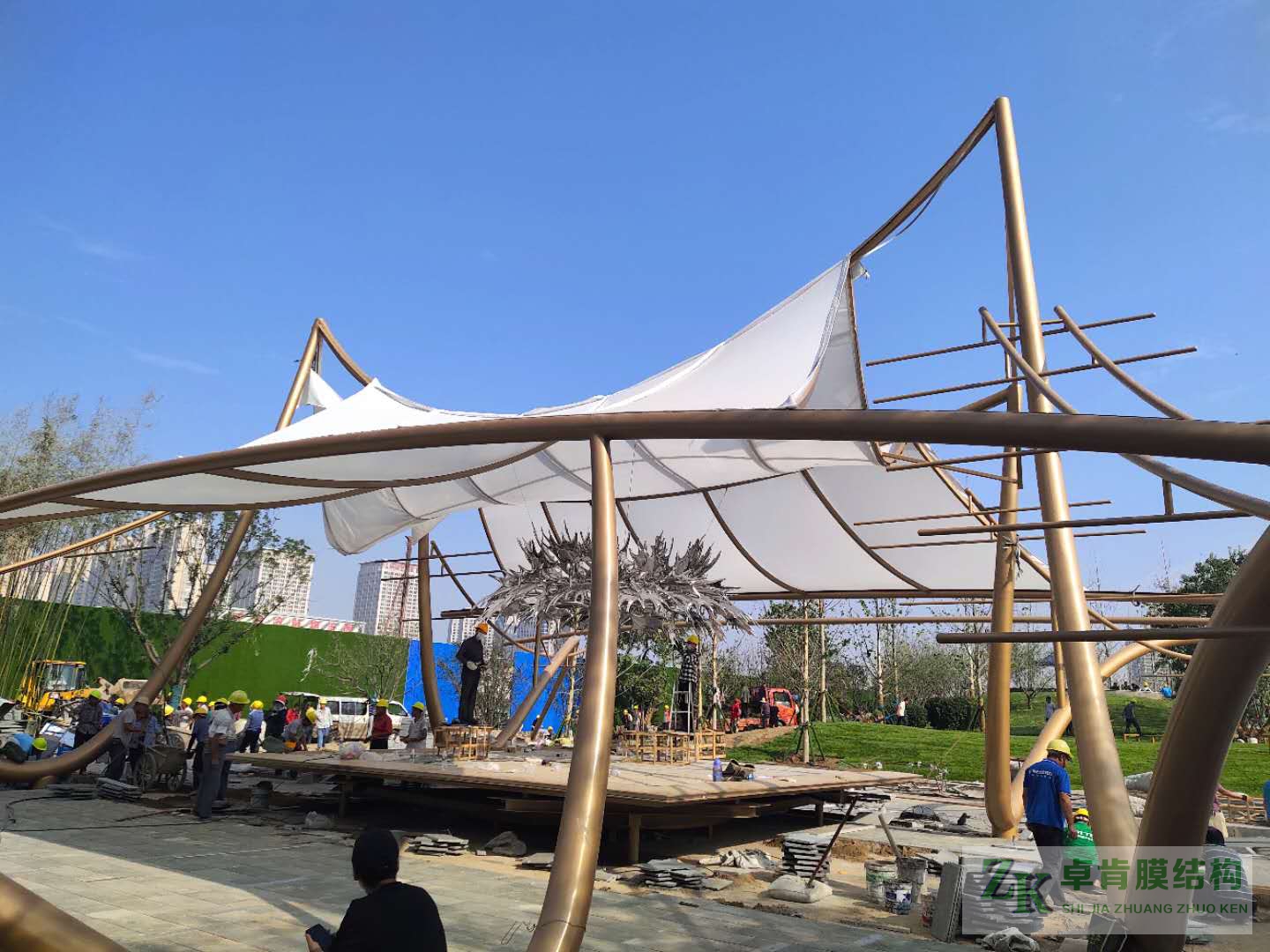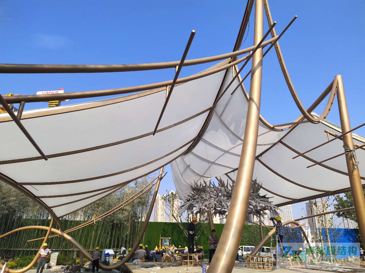 石家庄万科紫台张拉膜结构景观建筑施工中