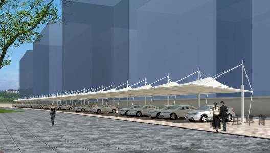 秦huang岛膜结构车棚公司使用膜材的支撑结构和柔性膜材使修建物外型愈加多元化,新颖漂亮,yi起表现结构之美,表明且颜色丰厚,有较高的反射性及较低的光吸收低而且热传导性较低,这很大程度上阻碍太阳能进入室内,半透明的设计确保了恰当的光线散射。