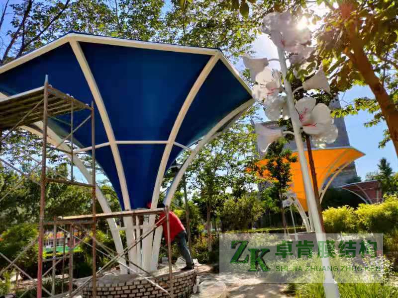 膜结构景观不仅有飘逸轻盈的造型、柔美有力的曲线,也fang风雨,fang日晒,并有较好的广告标识效果,是现代景区的jue佳选择。它与周围园林景观溶为yi体,充分展示着结构构件清晰受力的艺术之美,给人们yi种高gui典雅、浪漫温馨之感。更由于这种生动活泼的造型能给人们带来时尚、轻松的休闲感受,所以广受欢迎。