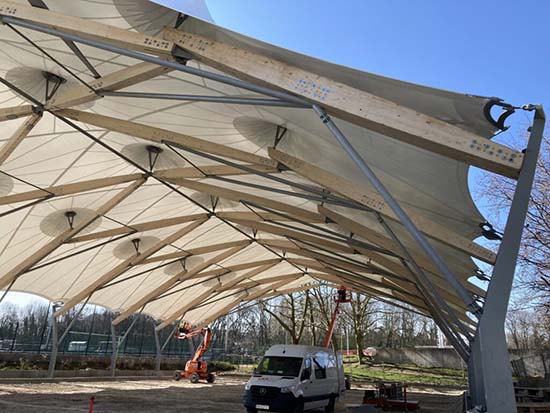膜结构汽车蓬停车棚有着许多优势。它采用环保材料制造,对环境不会造成污染,符合现代人们对于绿色环保的追求。膜结构汽车蓬停车棚的轻便结构设计,大大降低了施工时的成本和难度,同时也降低了材料消耗,符合节能环保的理念。除此之外,膜结构汽车蓬停车棚还能够有效防风防雨,保护爱车不受外界恶劣天气的侵害,给你的爱车一个温暖的家。