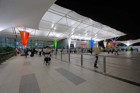 大型膜结构车棚还被广泛用于体育场馆和休闲广场等场所。其优越的遮阳性能和舒适的环境,使其成为了人们进行户外运动和休闲娱乐的理想场所。无论是进行篮球比赛、健身锻炼,还是举办文艺演出、庆祝活动,大型膜结构车棚都能够为人们提供一个安全、舒适的场地。