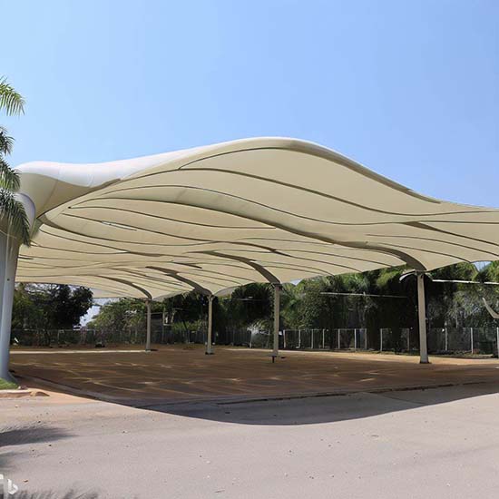 现在让我们来看看为什么景观膜结构棚被广泛应用于户外项目中。首先,它具有极高的设计灵活性,这意味着无论是广场、公园,还是商业中心,膜结构棚都能完美融合在周围环境中。此外,膜材料的轻便特性使得它在大跨度建筑中具有明显优势,尤其适合需要大面积遮盖的场所。
