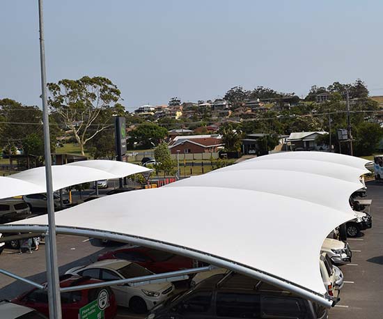 户外停车棚:膜结构停车棚为机场乘客及工作人员提供了遮阳避雨的便利,还为停车场增添了美观的元素。
